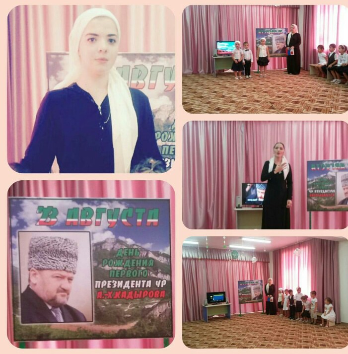 23.08.2016Тематическая беседа, посвященная Дню рождения Ахмат-Хаджи Кадырова. Провела Алимханова Макка в средней группе "Ласточки"